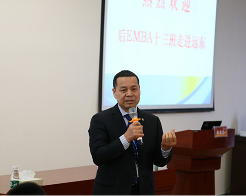 蒋华君主持座谈会 蒋华君主持座谈会,他对北大后EMBA老师和学员的到来表示热烈欢迎。远东创建于1985年,始终坚持“主业+投资”的发展战略,致力于发展成为全球投资管理专家、智慧能源专家即全球领先的智慧能源、智慧城市系统服务商。他表示,远东30多年的发展,离不开社会各界与在座各位的关爱、支持与帮助,他对此致以衷心的感谢。
