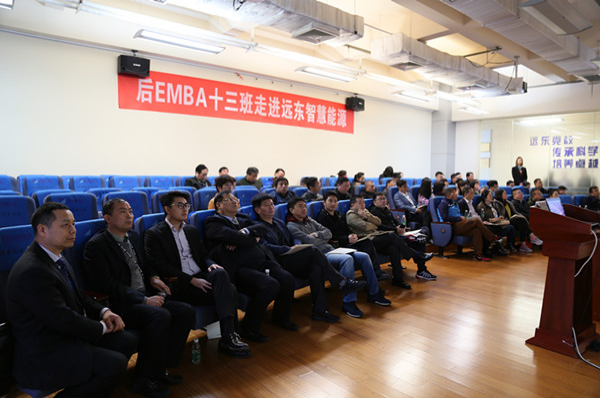 3月24日,北京大学后EMBA创办人崔巍,后EMBA 十三班老师及学员一行70余人莅临远东参访交流,远东控股集团董事、远东智慧能源股份有限公司(简称:智慧能源 股票代码:600869)董事长蒋承志,集团董事、智慧能源副董事长、首席执行官、后EMBA十三班学员蒋华君等接待。