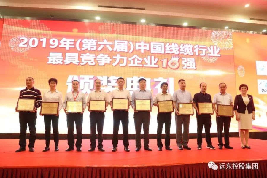 9月2日,由中国电器工业协会电线电缆分会、上海电缆研究所有限公司主办的2019年中国电线电缆行业大会在上海召开,远东智慧能源股份有限公司(简称:智慧能源 股票代码600869)再次荣膺“全国线缆行业最具竞争力10强”。