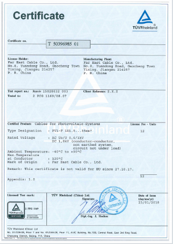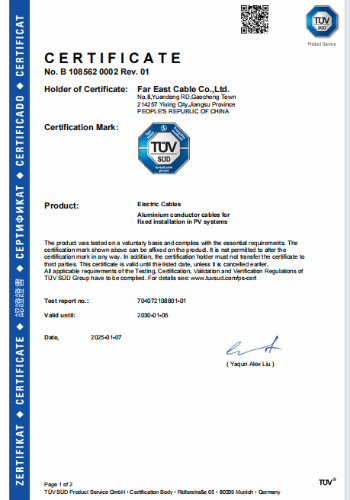 企业构建覆盖光伏全链路的产品矩阵,光伏直流汇流电缆采用直拖结构导体设计,热阻小、载流量大,已成功应用于江西上饶250MWp、陕西渭南100MWp、乌兹别克斯坦光伏电站项目等国内外标杆项目。产品通过TÜV莱茵、UL、IEC等标准国际认证,出口至欧美及东南亚市场,以“中国智造”技术实力赢得全球信赖。