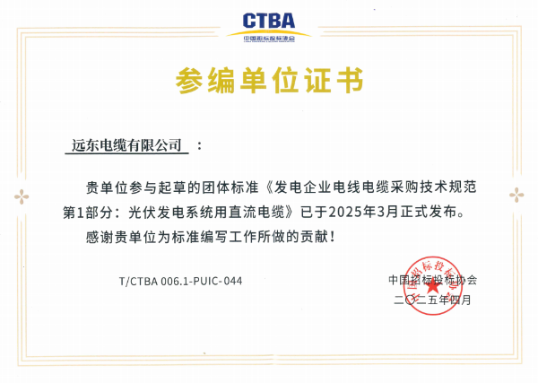 此外,远东电缆还荣膺“物资云优秀供应商”、“2024光伏组件专用电缆十大优秀品牌”等权威荣誉,并参与起草《发电企业电线电缆采购技术规范》标准制定,推动行业规范化进程,以“技术+标准”双引擎驱动产业升级,树立高质量发展典范。