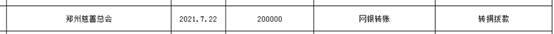 记者注意到,部分捐赠资金已投向防汛救灾。一笔定向二七区樱桃沟管委会的20万元收入在接收当天(7月29日)支出,备注为“二七区樱桃沟景区管委会用于恢复重建和灾后防疫”,捐赠名称为“防汛救灾定向捐赠资金拨付”。